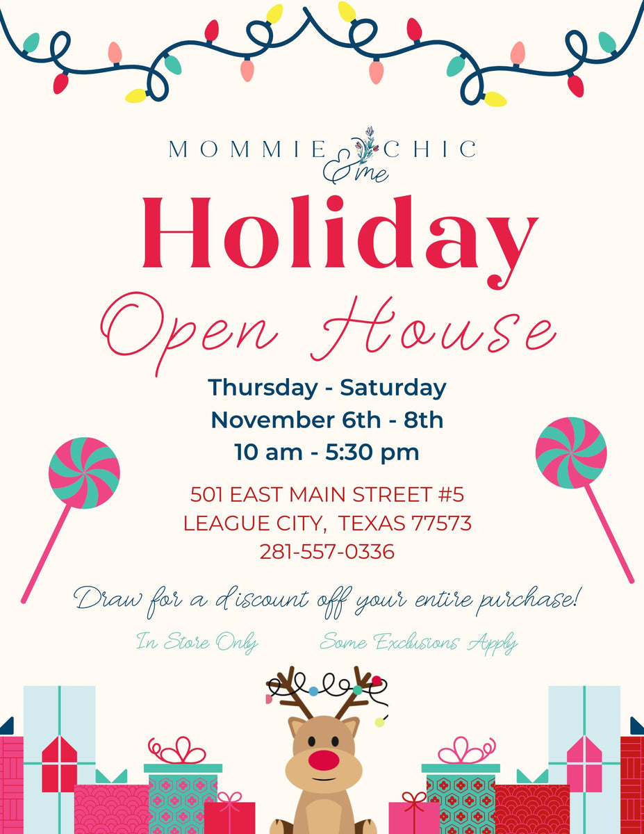 Can you believe that this is our 18th Holiday Open House? It is always a fun 3 days of giveaways, discounts, food and fun. Our neighbors are participating too. It will be a fun weekend in Founder's Square.