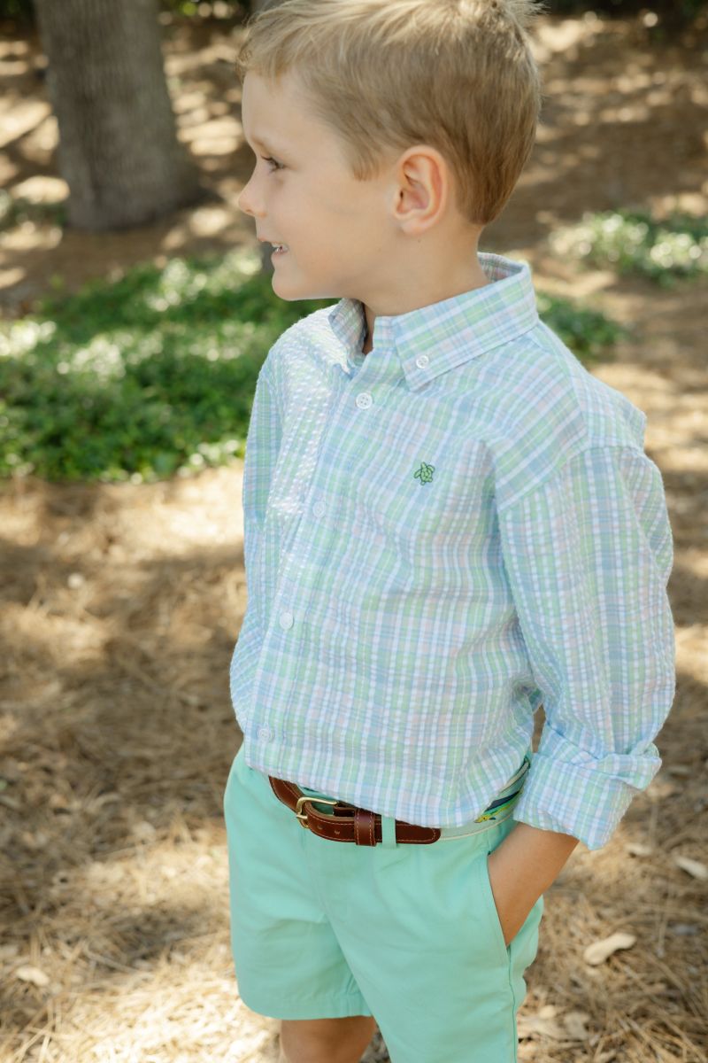 The Bailey Boys Button Down Shirt in Blue Striped Seersucker is a classic choice for your child's wardrobe. Made from high-quality seersucker fabric, this shirt offers both comfort and style, perfect for any occasion. The lightweight material ensures breathability, making it ideal for warmer weather.