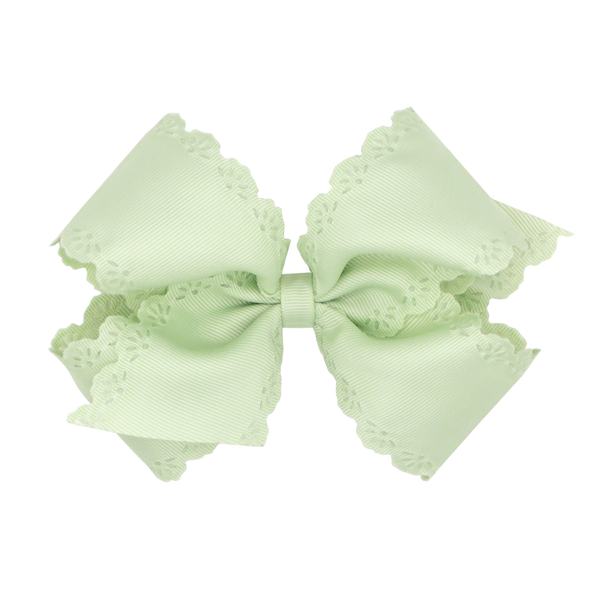 Discover the perfect accessory for adding a touch of charm to your little one's outfit with the Small King Grosgrain Bow. Featuring eyelet flower embossed edges, this bow offers both style and elegance for any occasion.