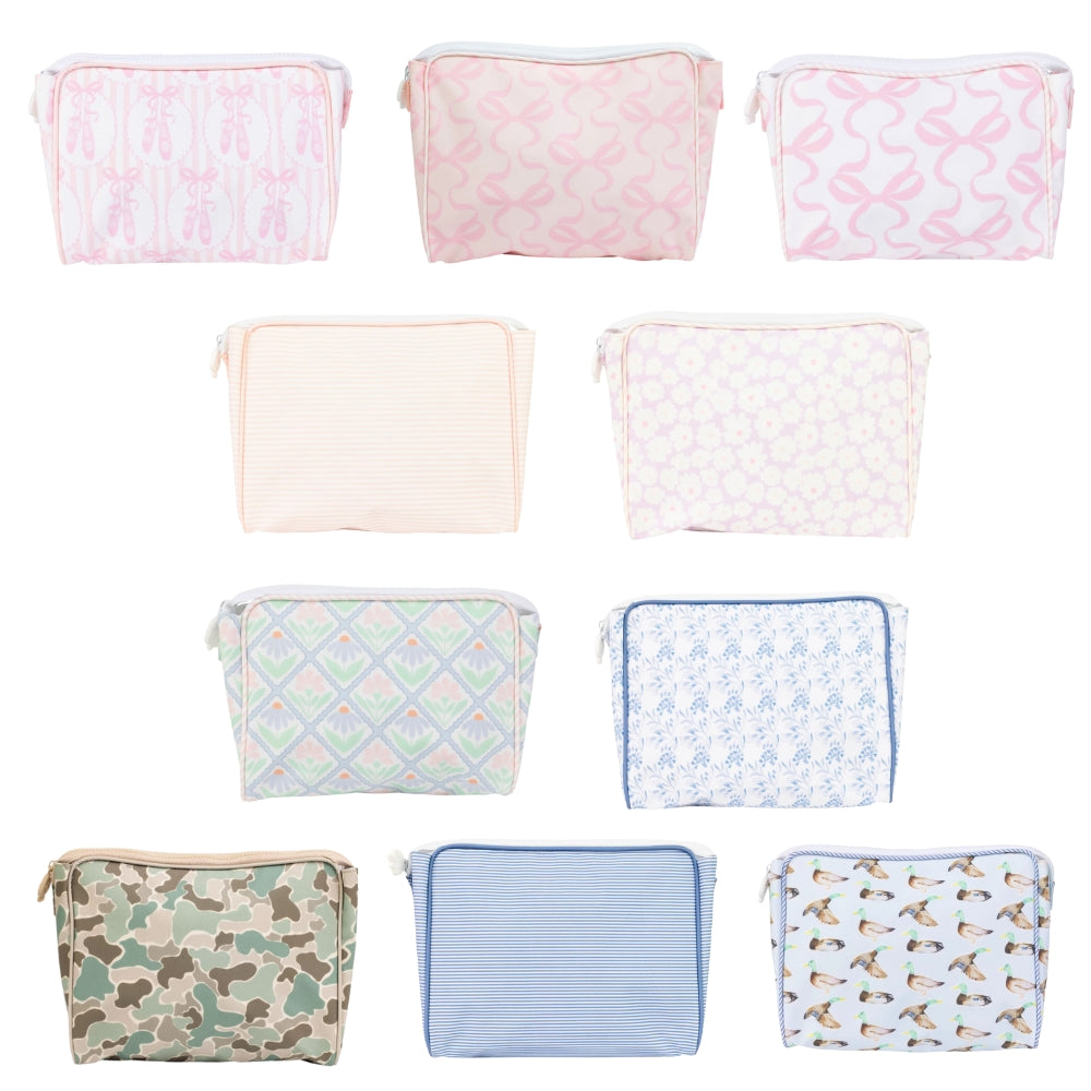 The Large Go Bag is just that - a bag for your things on the go! Diapers/wipes, makeup, toys, sunscreens, pacifiers, all the things organized to grab and go.