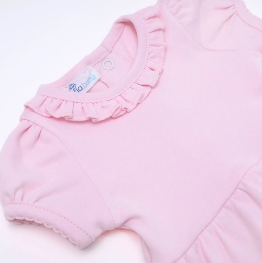 Indulge your baby in the luxurious comfort of our Magnolia Baby Essentials Ruffle Bubble. Made in Peru from premium pink Pima cotton, this bubble is exceptionally soft and gentle. The delicate ruffle accents add a touch of sweetness, while the smooth Pima cotton ensures all-day comfort. This bubble is the perfect canvas for personalization, allowing you to add a unique touch with a monogram, name, or special design.