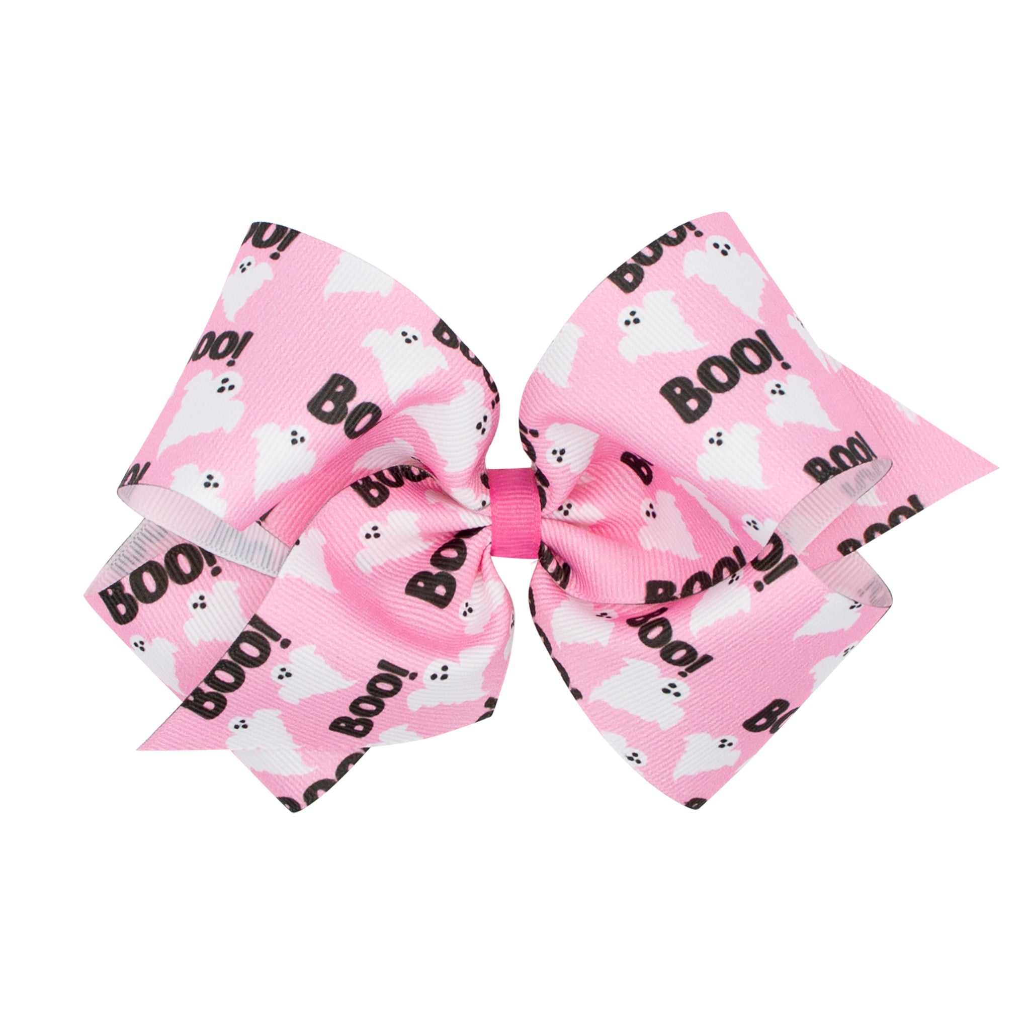 • Load image into Gallery viewer, Pink Boo & Ghost Print Grosgrain Bow