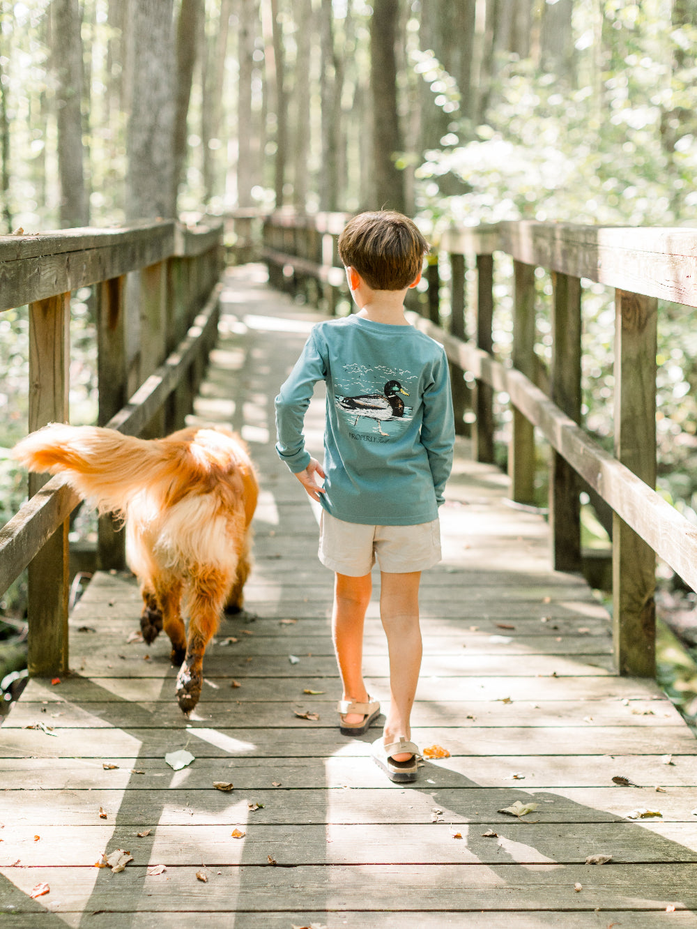 Boys "Swimming Mallard" LS T-Shirt in a beautiful Marine Green. A swimming Mallard on the back, with the Properly Tied logo on the front. Super soft 100% cotton and fantastic quality.