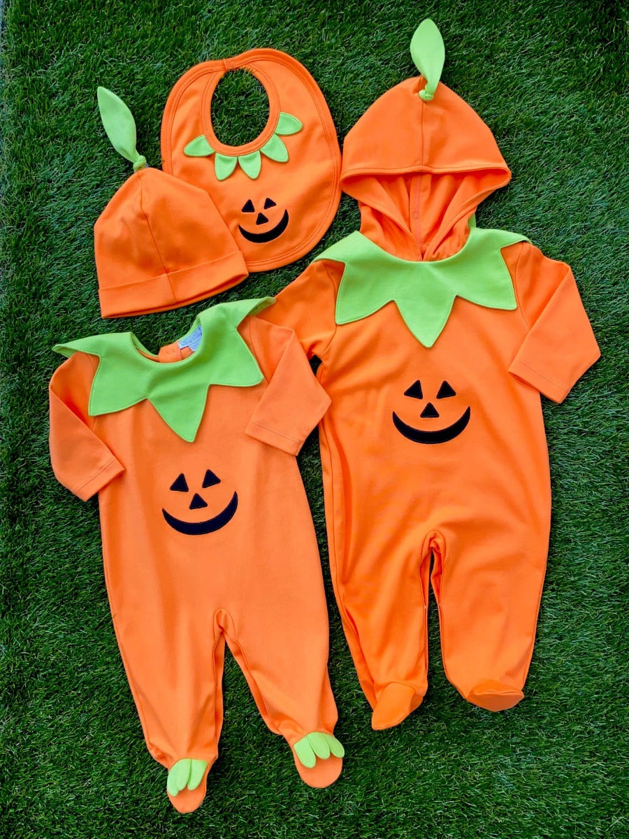Add the matching Jack-o'-lantern themed bib with the footie, made from the softest Pima cotton for the ultimate in comfort.